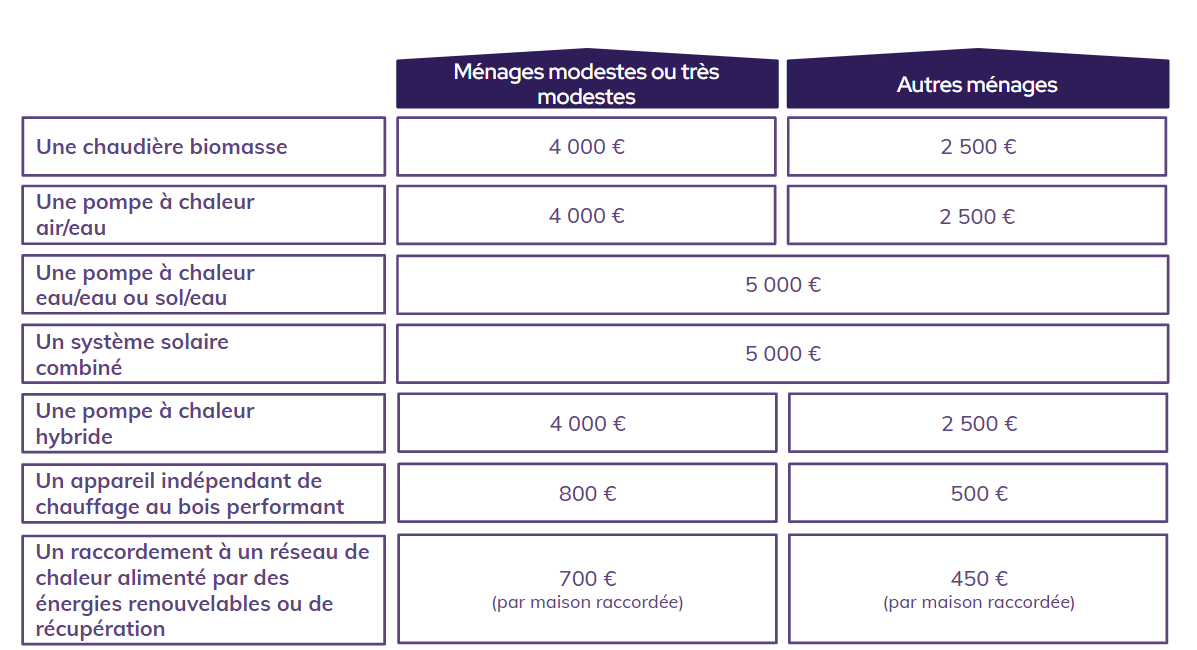 - Le chauffage (prime « Coup de pouce Chauffage »)